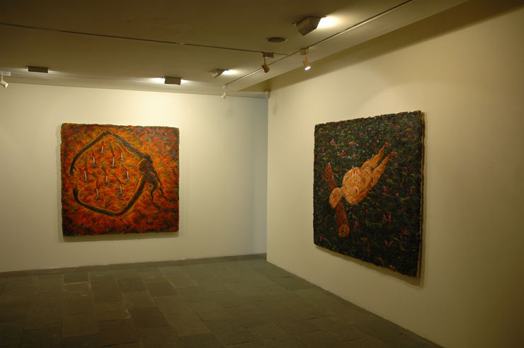 當一位畫家為了完成自己,他必須滲透,滲透到自己的內在,滲透到自己的靈魂,他必須完全交付出自己。他既不能為觀眾而畫─ 那有賣弄之嫌,也不能全為觀察自己而畫─ 那會導向虛偽及歇斯底里,因為如果心理狀態一被觀察就不再是活生生的,而是一種觀察後的模倣,是虛偽的東西,甚至會演變成自溺式歇斯底里[5]。比較好的方法應是找到一個「安全伴侶」,創作的目的是向他交付出自己。欣賞黃榮禧的作品關鍵點就在於觀者與作品對應時的感受,不能是賣弄,也不虛偽,相反的,應是一種對著安全伴侶的真誠傾洩。傾洩而出的東西或許看起來也歇斯底里,但卻絕不是咨意即興,而是具有真正的感情傳輸,最後可以形成靈魂淬鍊的痕跡。就好像個體的本我,可以不被皮膚侷限,隨著這種傾洩,蔓延到場域中。黃榮禧一路推送這種蔓延,不時迷路,走過慢慢長征。 2000 年在台灣最後一次個展到現在,我們看到他的創作漸漸朝向歸鄉之路,「鄉」指的應是內在的原鄉,但我不敢說畫家在這場傾洩之旅的末端原鄉會是什麼?超越的可能性又在哪裡?我只能問一句「一路好玩嗎?」,觀眾在此只有一種角色可以扮演─ 亦即安全伴侶,不多說了,安全伴侶是不多說話的。