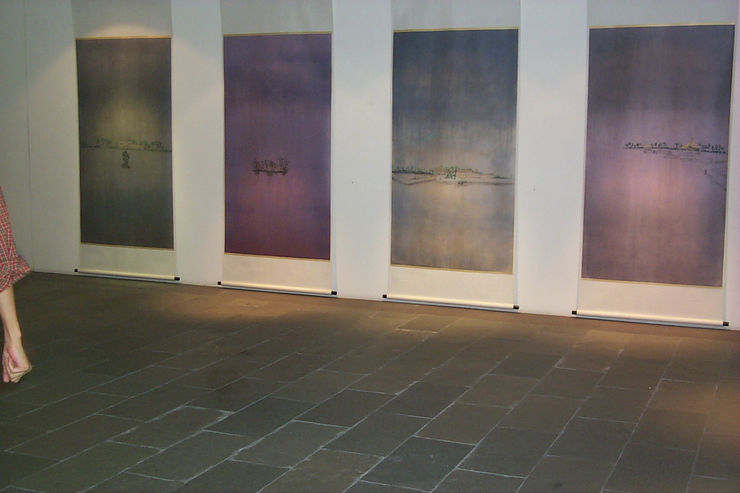 鄭在東,悠遊於上海與台灣的藝術家,繼 2000 年發表的「玩物喪志」個展,以及 2003 年令人回味無窮的「青山隱隱」個展後,又從上海帶回約二十三幅左右的新作,替大未來畫廊帶來了一種寂靜空靈的氛圍。