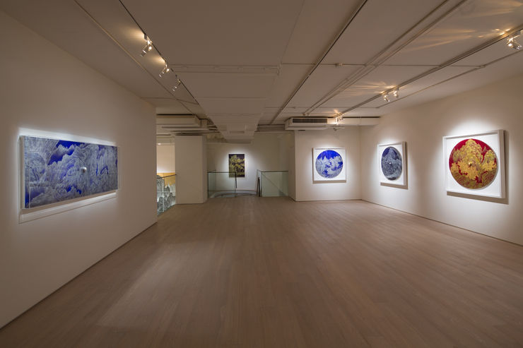 綜觀姚瑞中這二年的系列作品,仍保留了金碧山水的風格,試圖將傳統山水畫再次注入新體裁與技法,早期發展出的「春蠶吐絲皴」改以「硬筆磨砂皴」取代,引入長期被文人畫忽略的裝飾性畫風,並加入漫畫常用的「對話框」以及各種「視窗」,以跳脫傳統單線敘事的侷限,同時也促成中國傳統繪畫與西方美學強勢主導的當代藝術的碰撞與融合,建構出重峰疊巒的滿壁江山。觀者拾步緩行此間,縱使未必可以凝氣怡身,至少也能走入一片視野遼闊、看似喧囂的寂靜之中,一晌貪歡。