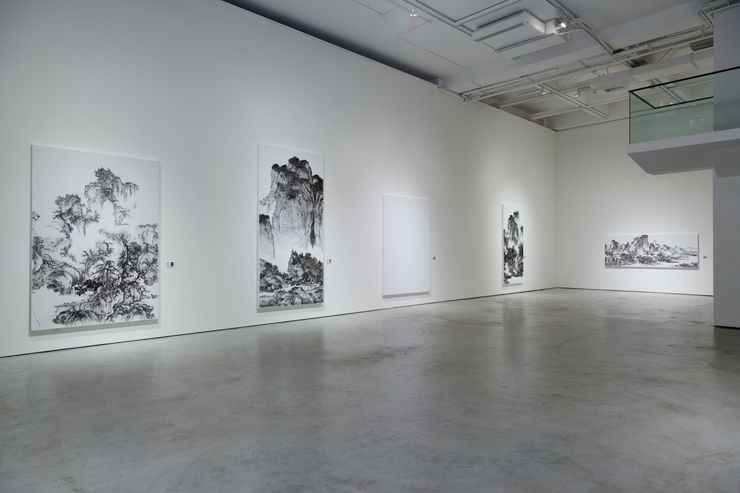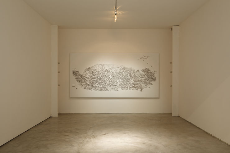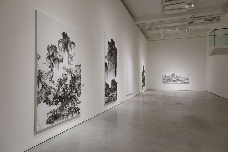 此次個展中,陳浚豪「蚊釘山水」系列作品的臨摹對象,主要是以台北故宮典藏的精品為主,尤其晚唐、五代及宋代以前的作品,如最廣為熟悉的郭熙《早春圖》、范寬《谿山行旅》及李唐的《萬壑松風》。《早春圖》是這系列最早開始進行的作品,共使用了約 40 萬根不鏽鋼蚊釘,在 280 x 188 cm 的木板白色畫布上,蚊釘疏密的配置,形塑傳統水墨畫中的皴法乃至氣韻,試圖以蚊釘重現其原作中層巒疊嶂的恢弘氣勢;蚊釘突出畫面約 1 公分,以點的聚集來形成線條,再構成塊面,以接近西方點描派的方式來進行極個人化、量化的繪畫性作品。最後,透過光線照射的蚊釘所形成的陰影,完成最後一道近似於水墨暈染的觀念繪畫,形構出早春水氣瀰漫的山水氤醞。