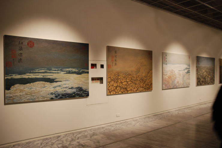 張宏圖的最新創作「再製馬遠水圖(七百八十年之後)」完整系列共十二幅,以西畫的材料,重新繪製馬遠水圖,水圖裡的各種波濤起伏,不僅是藝術家對於自然的微察,同時代表著畫家感性的意境,穿越過七百八十年後的歷史塵埃,在人們逐漸地與自然疏離後,張宏圖的水圖意象也許顯得超現實,它脫離寫實的觀察,而對再現的現實進行專研,它更多的概念來自於藝術家如何透過自己的語言方式摸索中西歷史交界的視覺消失點。