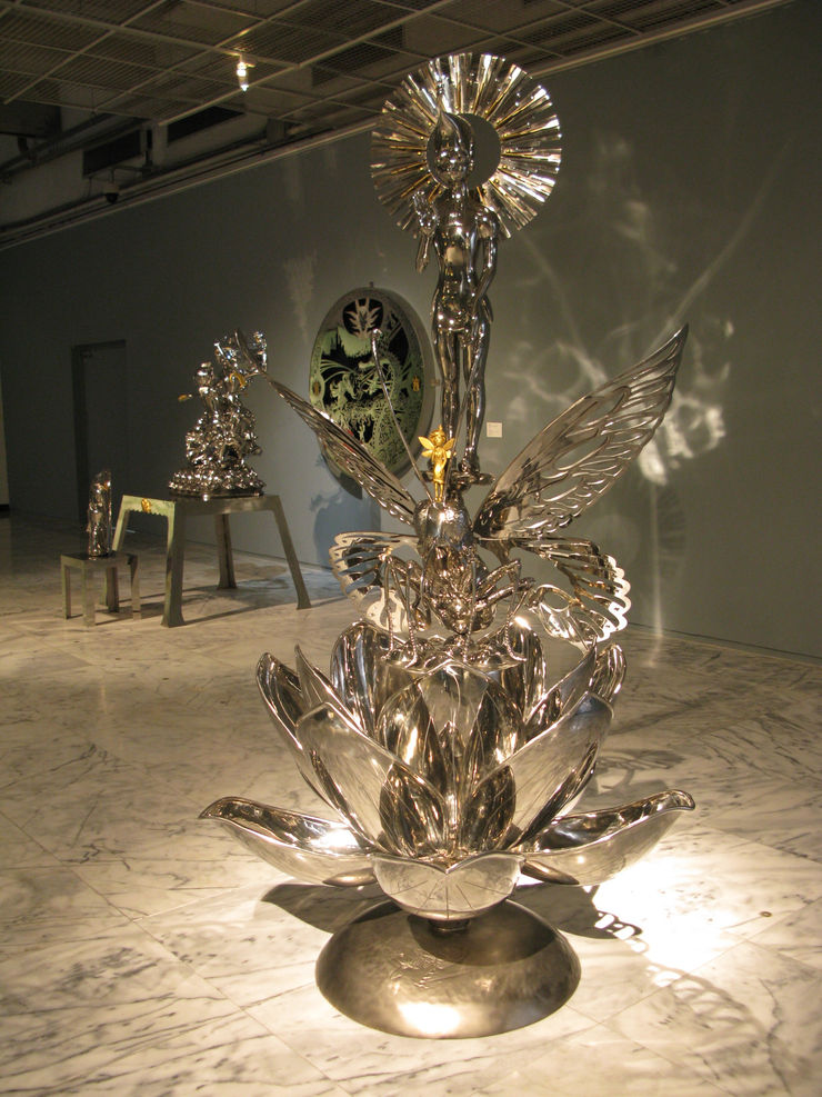 楊茂林早在台北畫會時代,就對建造一個屬於在地記憶的史詩圖像,有執著的投入,近年來他將創作方向由架上繪畫轉為雕塑,關注時代潮流裡最為讓人迷戀的圖像造型及寓言故事,莊嚴肅穆的神明信仰變成了今日充滿敗物狂熱的精神指標,諭示著道德提升及規範的神像手勢,也重新在楊茂林新寓言結構裡有了不同的詮釋,而帶有神話裡浪漫而激情的人性慾望,這些人物雕塑被擺在供桌上,當代精神體制的膜拜方式有所不同的解讀。