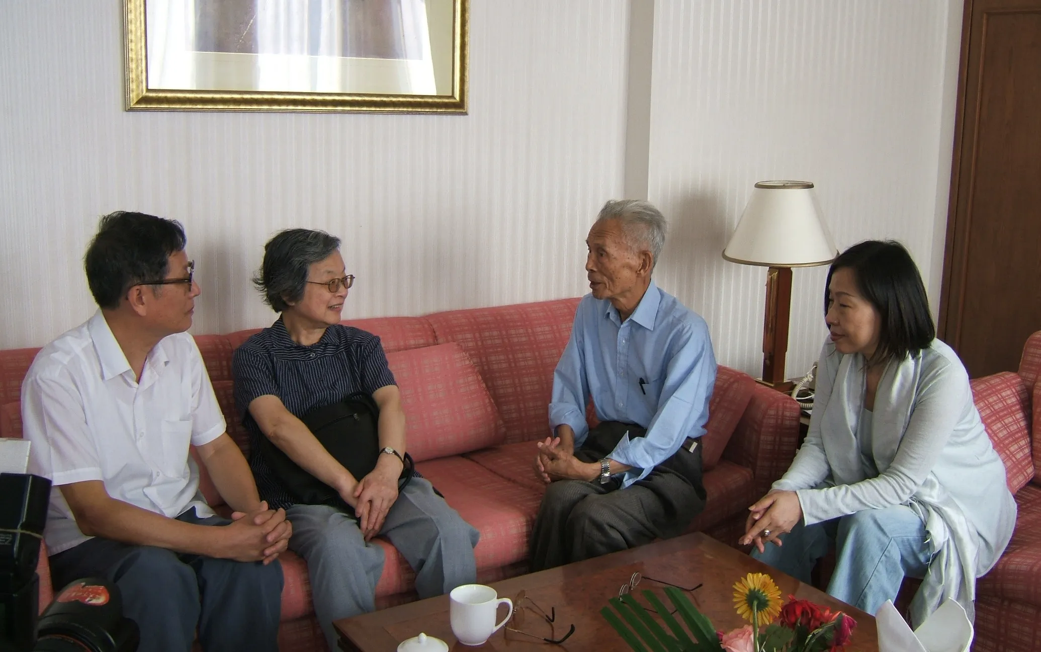 吳冠中(右二)與吳大羽家屬及耿桂英女士(右一)