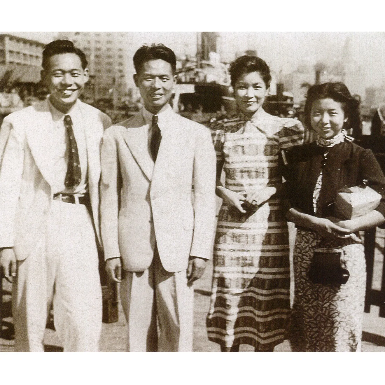 趙無極(左一)、吳大羽(左二)、吳大羽之妻壽懿琳(左三)與趙無極之妻謝景蘭(右)
